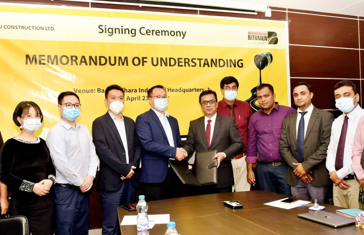 বসুন্ধরা বিটুমিনের পক্ষে চুক্তিতে সই করেন এবিজি বসুন্ধরার চেয়ারম্যানের সচিব মাকসুদুর রহমান এবং চীনের শিং শু কনস্ট্রাকশন লিমিটেডের পক্ষে প্রতিষ্ঠানটির ব্যবস্থাপনা পরিচালক (এমডি) লিয়াং জুসেন।